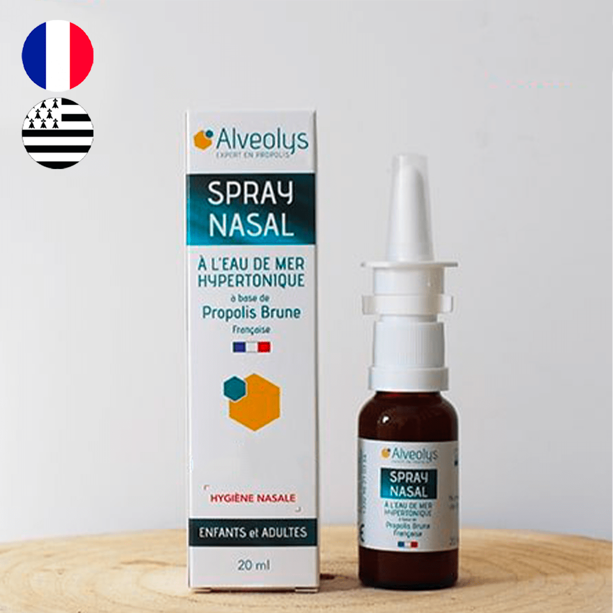 富含海水和法国棕蜂胶, Alvéolys鼻喷雾剂 是用于日常鼻腔卫生的完整配方。